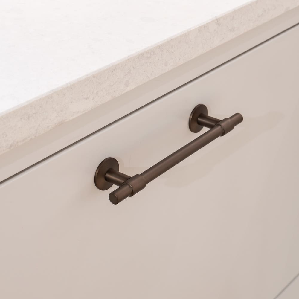 Handtag Uniform i brunerad mässing är ett elegant och sofistikerat handtag i mjuk ton. Denna underbart vackra skapelse från Beslag Design är en modern klassiker som matchar den populära knoppen T Uniform. Handtaget erbjuder ett skönt grepp och passar på såväl garderoben som i köket. Tillverkat av högkvalitativ massiv mässing.